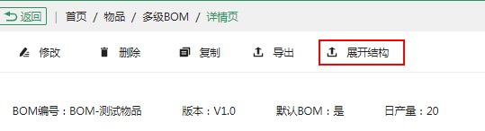 多級BOM創(chuàng)建后,可查看其展開結(jié)構(gòu)